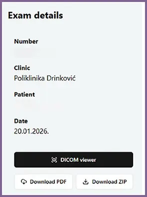 - Pregled nalaza i slika putem DICOM preglednika (online, bez instalacije dodatnih programa)